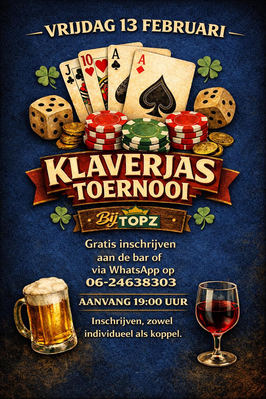 Vanaf 19:00 uur ben je van harte welkom voor een gezellige Klaverjasavond in het